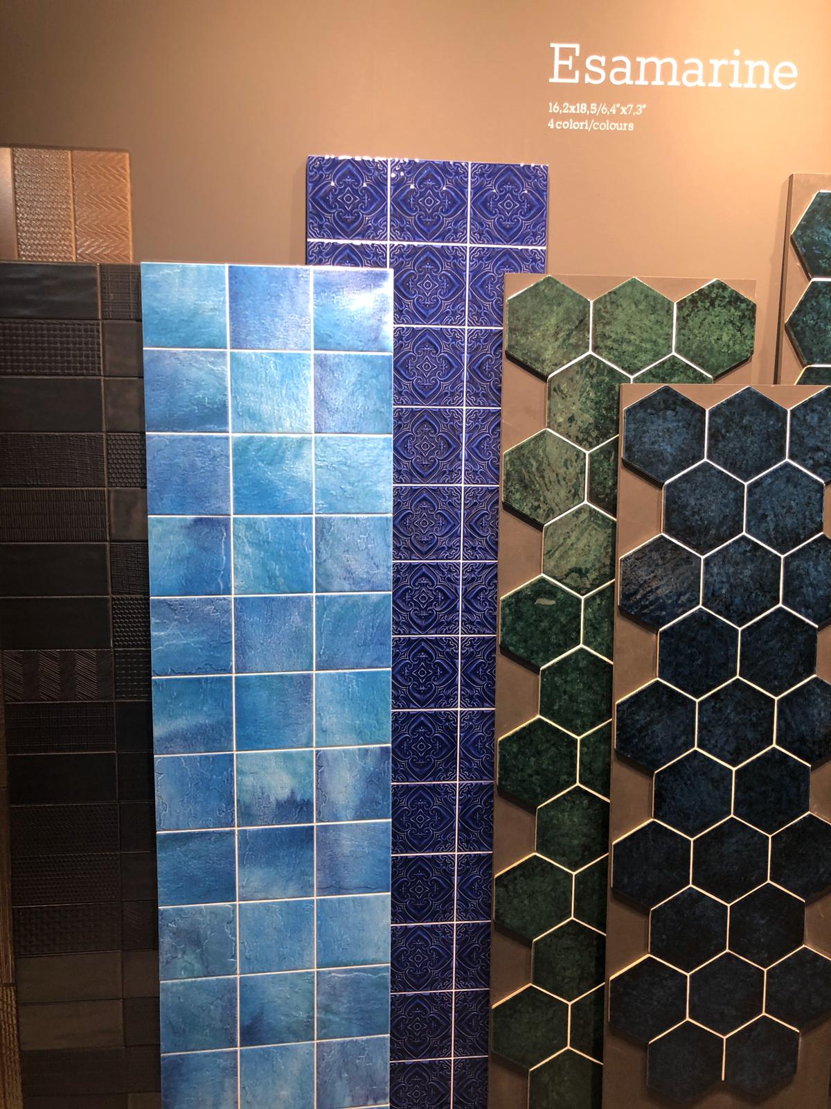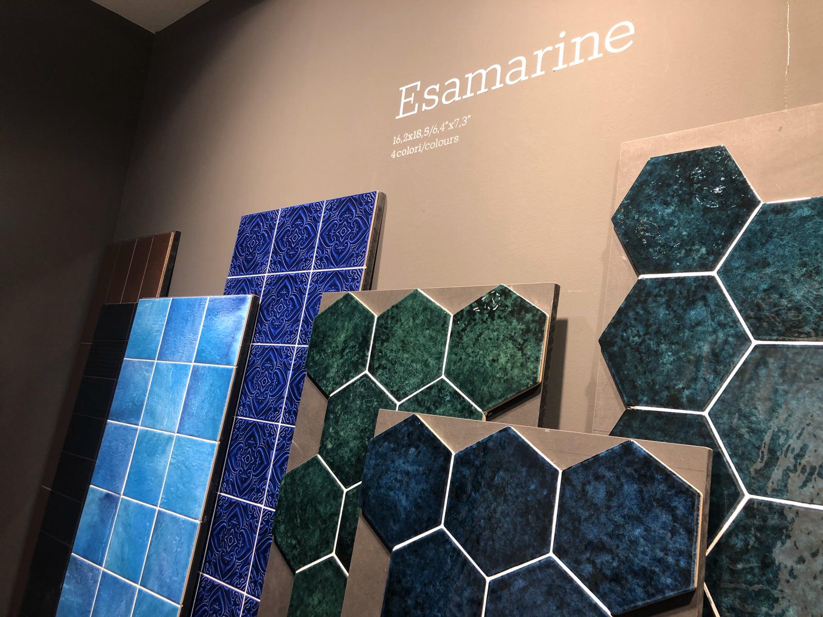 • Esamarine: glazed single-fired tiles, trapez 6″x6,9″ and 4 colours