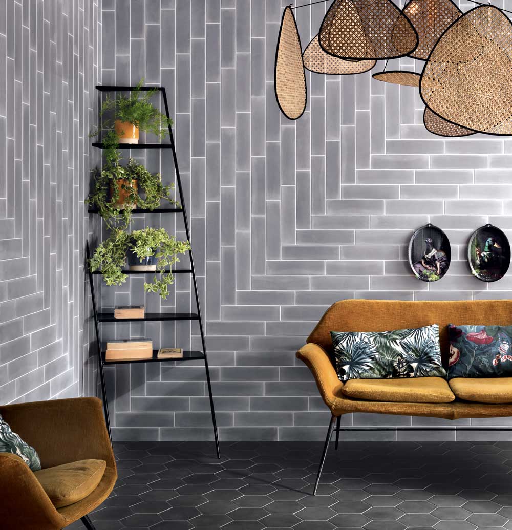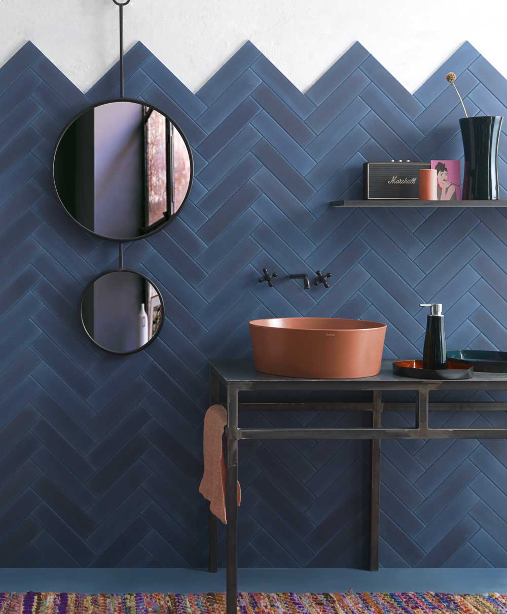Their smooth surface with colour shading echoes the effect of the cement tiles typical of the Maghreb; the tonal variations between the individual tiles make the chosen design even more attractive in its final context. The slight variations in color tone are balanced and enriched by the careful arrangement of the pieces in numerous laying patterns both on floors and walls.