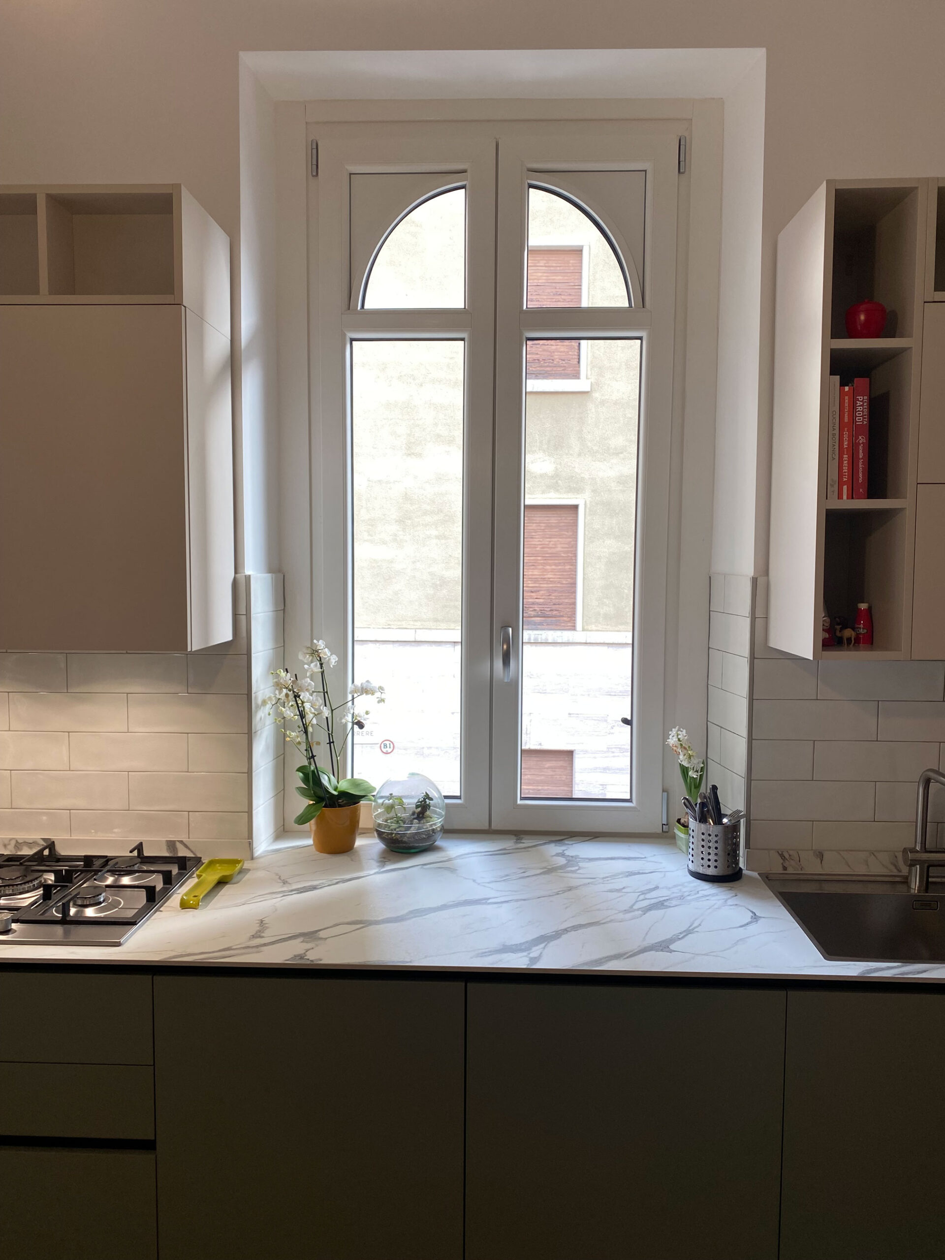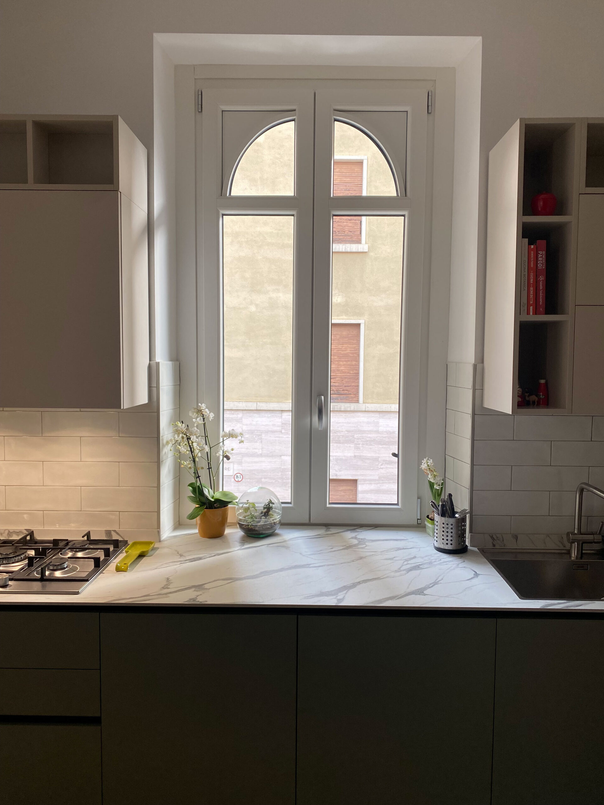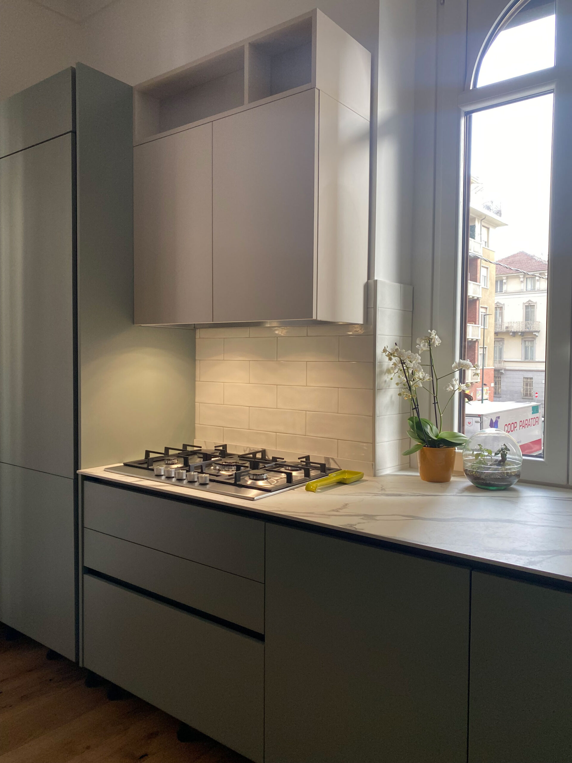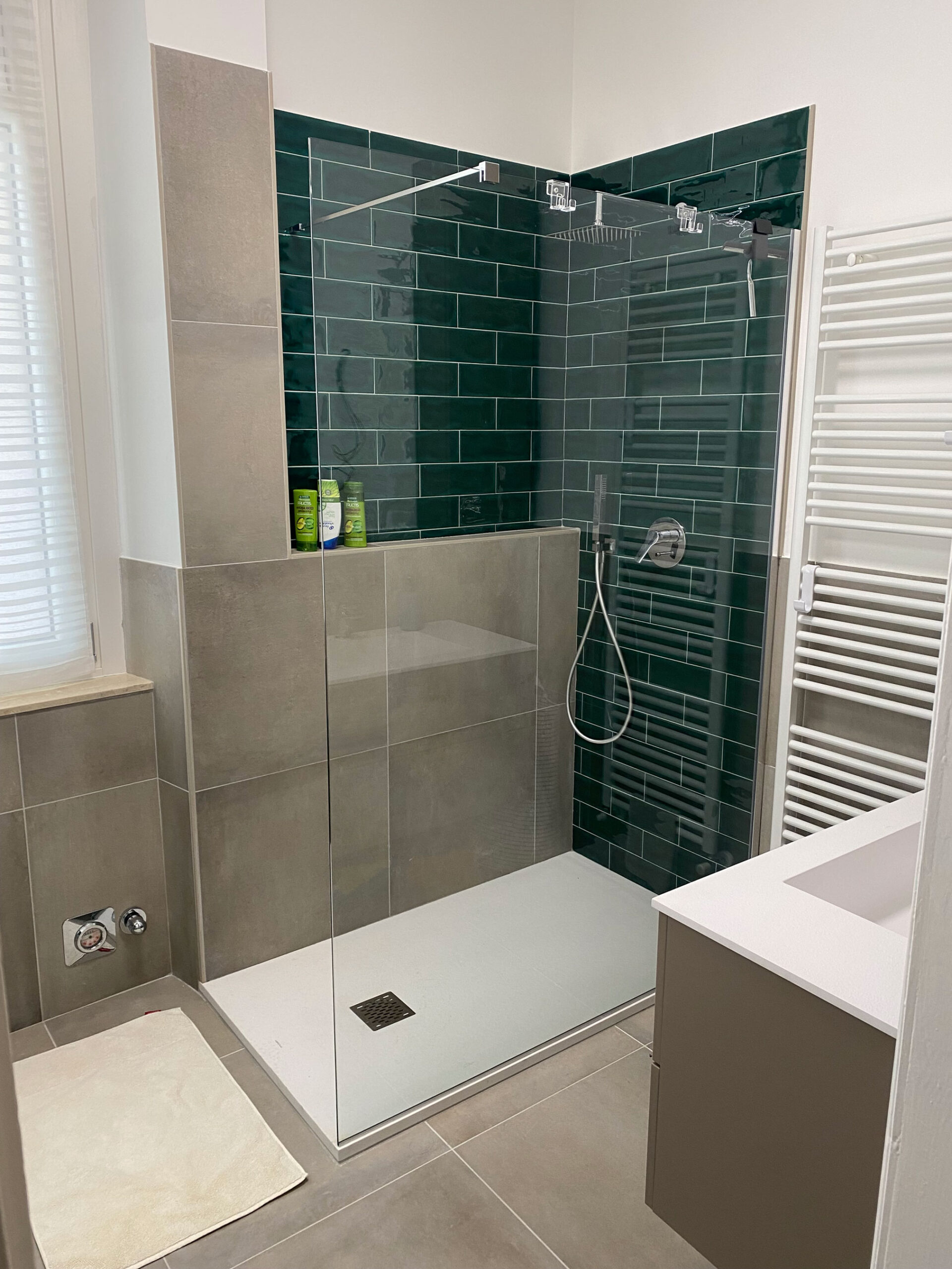 In the idea for the design of the two bathrooms we wanted to include a note of bright colour to avoid the usual all-grey bathroom.