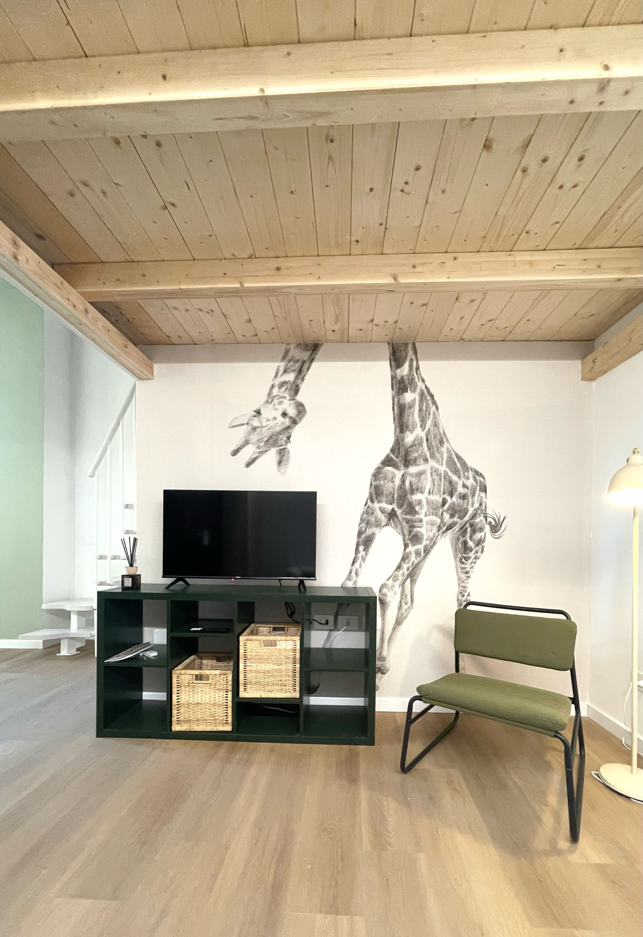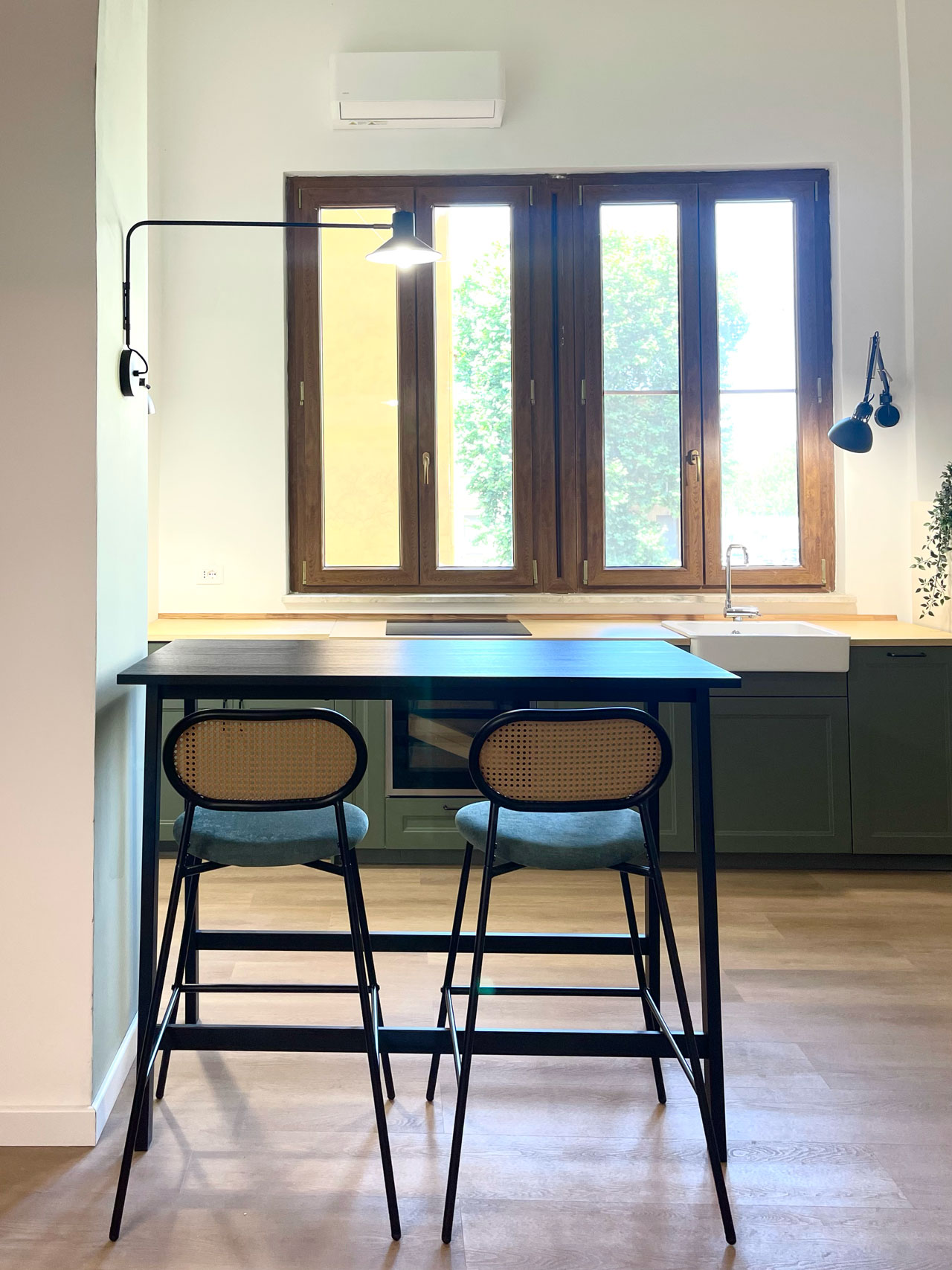 Casa Mini is distinguished by a contemporary style, played on material and color combinations that dialogue with each other: natural wood, shades of green and touches of graphic black create a sophisticated and welcoming balance.