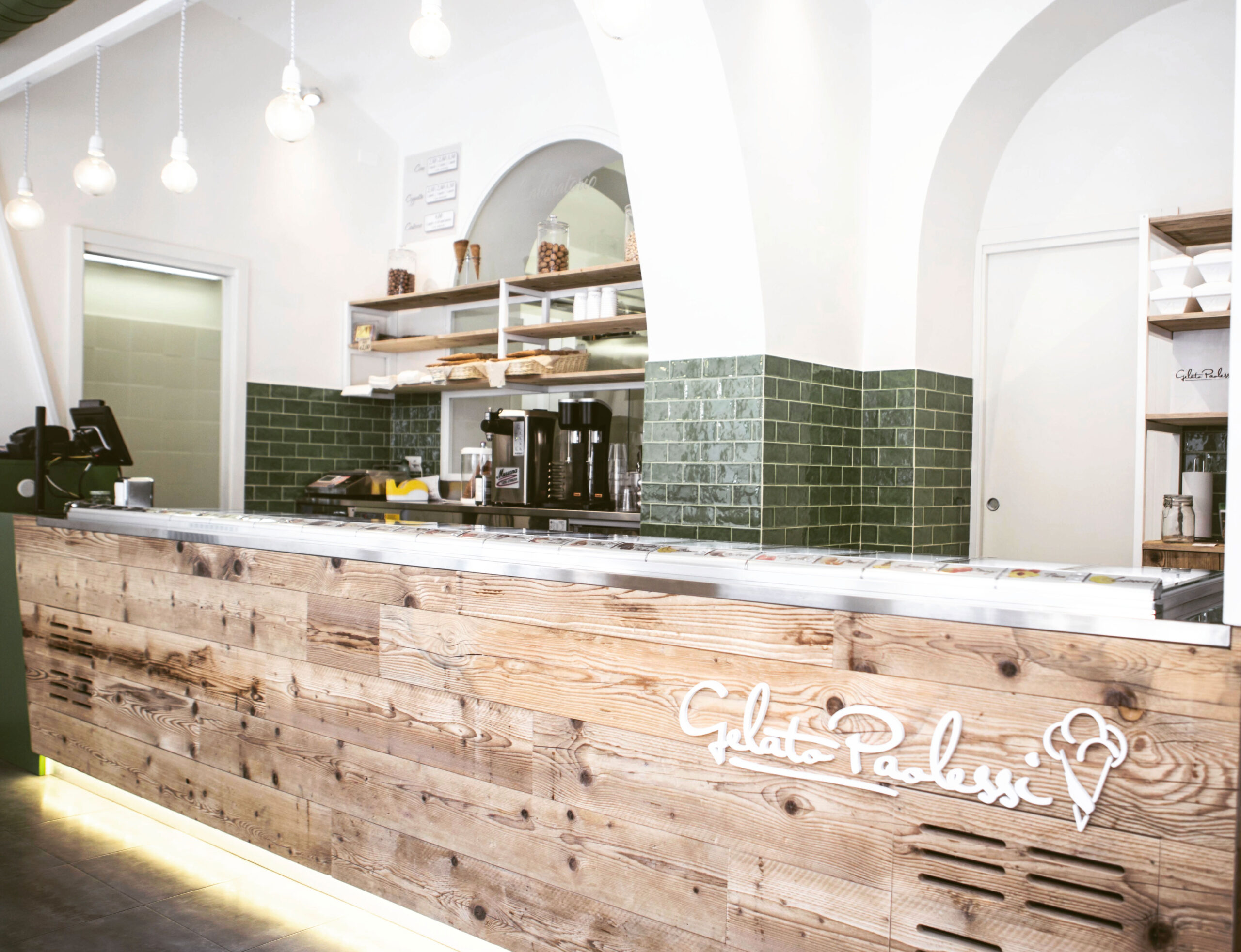All three outlets were designed incorporating reclaimed wood counters, and they will have more than 30 visible vats, lit up from above by light fixtures like a market stall. Tonalite Kraklè grass green tiles and natural wood give the space a fresh, welcoming atmosphere.