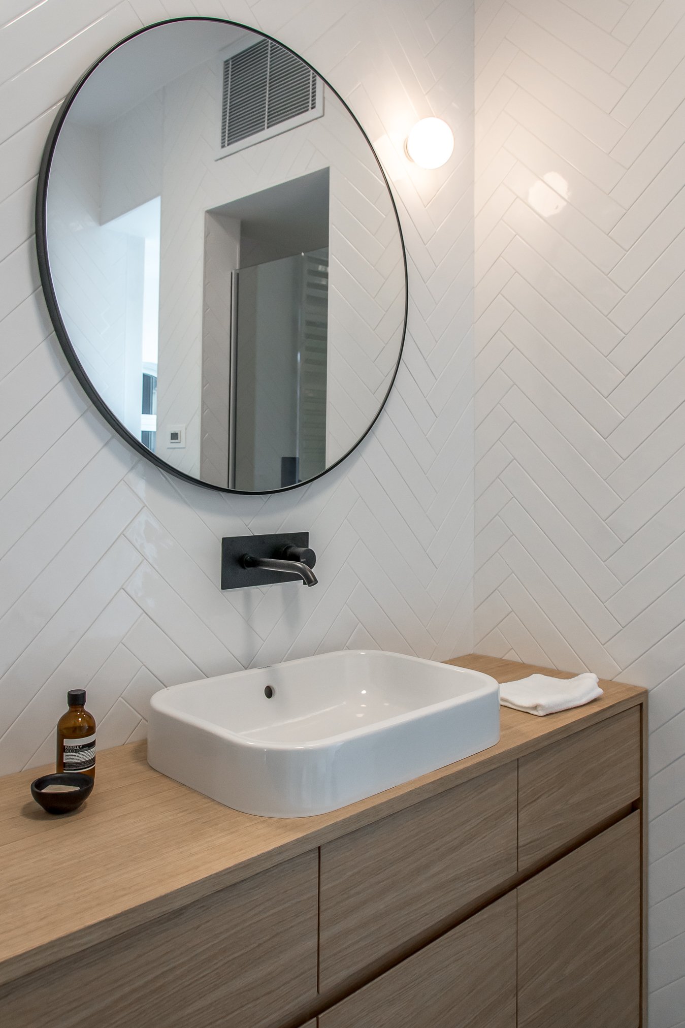 The 6.5×40 proportion of the Linea 40 collection fascinated us with its slenderness and grace, especially when we used it for full-wall wall covering throughout the bathroom. In addition, the shiny and rippled surface gives delicate and unexpected shades.