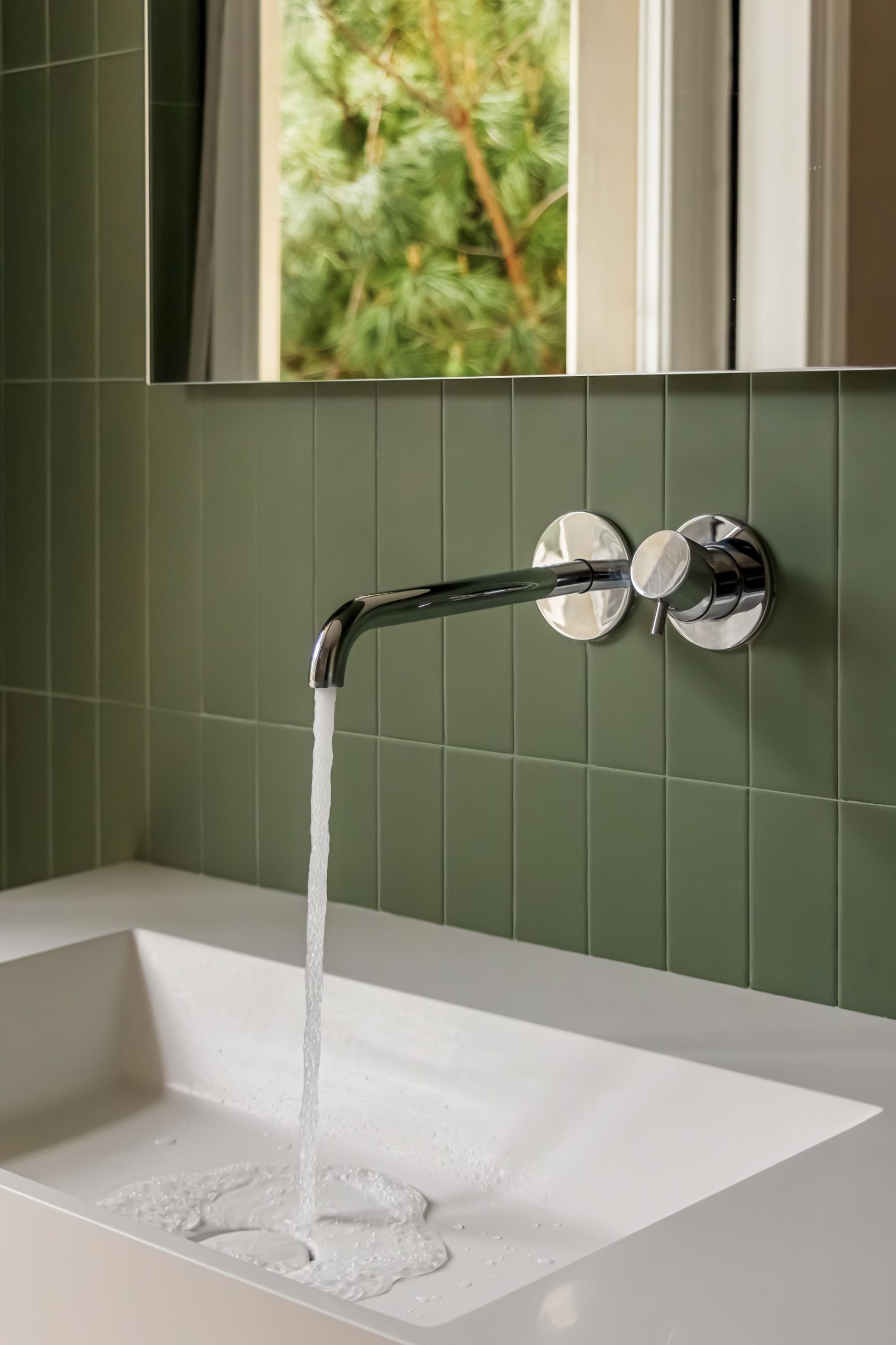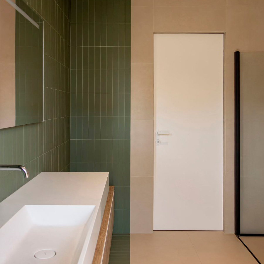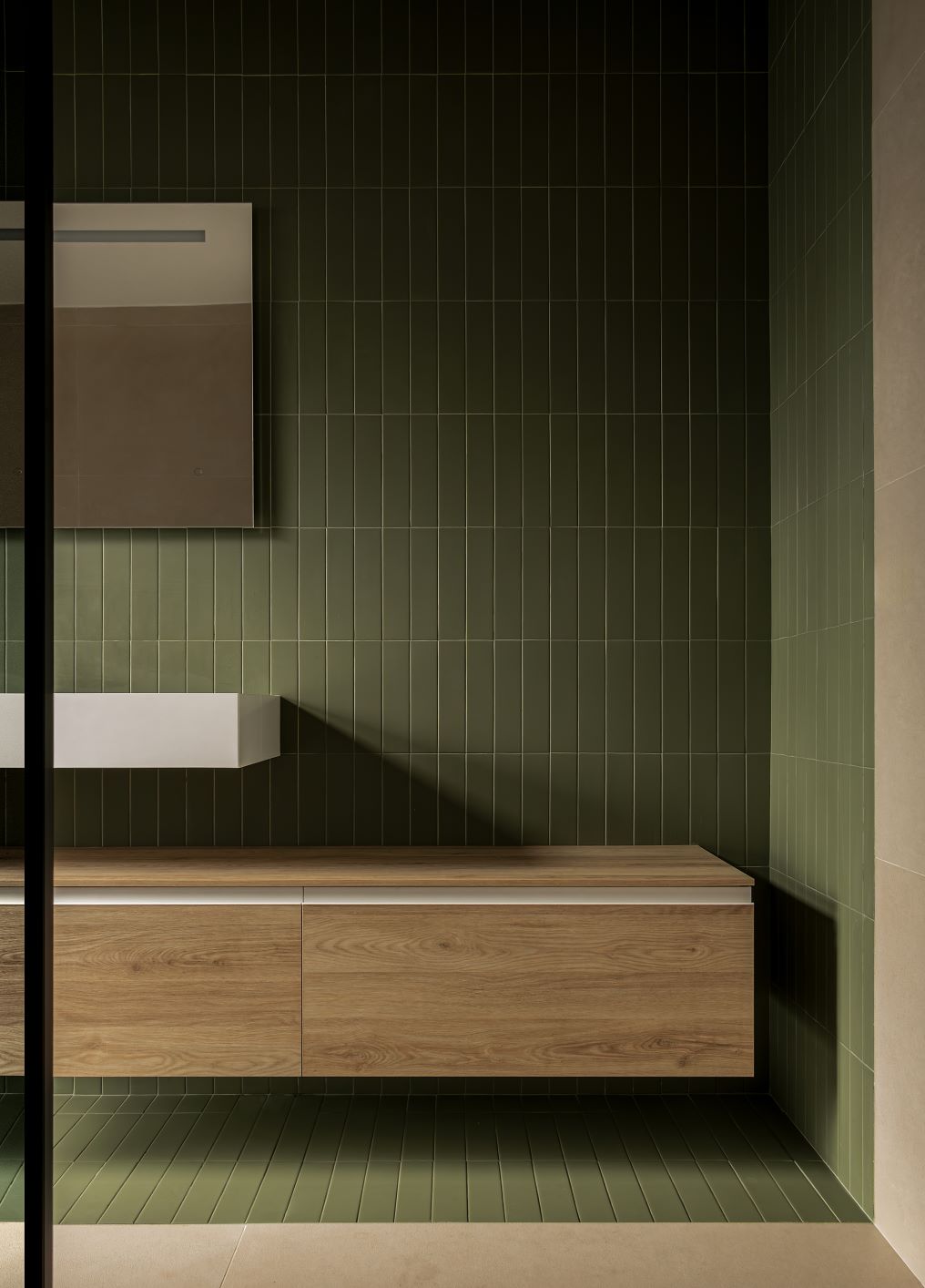 Lingotti tiles, in the color “Forest”, stand out for their excellent quality and refined design. The shade chosen harmonizes perfectly with the overall aesthetics of the project and the context in which the room is located, in close visual connection with the outdoor garden.
