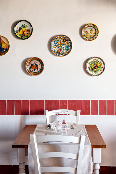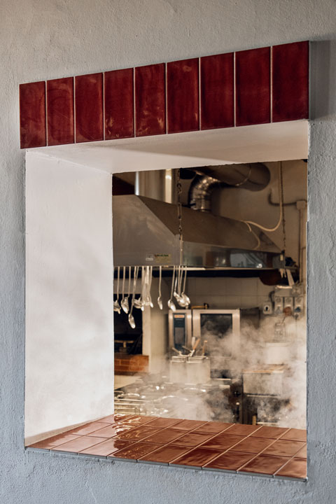 Partiamo dalle due sale di un ristorante sulle colline di Carmignano (Prato), al quale abbiamo già dedicato un articolo. Qui il colore Cherry della serie Joyful è stato utilizzato per rivestire una panca che corre lungo un’intera parete, per creare la fascia paracolpi lungo il perimetro delle sale e per coordinare sapientemente altri dettagli. Il piccolo formato (10×20) si è dimostrato sufficientemente versatile per tutti questi impieghi mentre il colore ha introdotto un elemento chiave dell’identità del ristorante, rendendone gli spazi caldi e invitanti. La finitura lucida, infine, ha introdotto una nota di brio, andando a bilanciare l’opacità del cotto a pavimento.