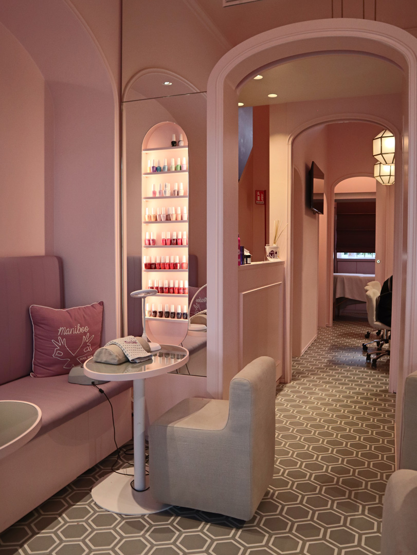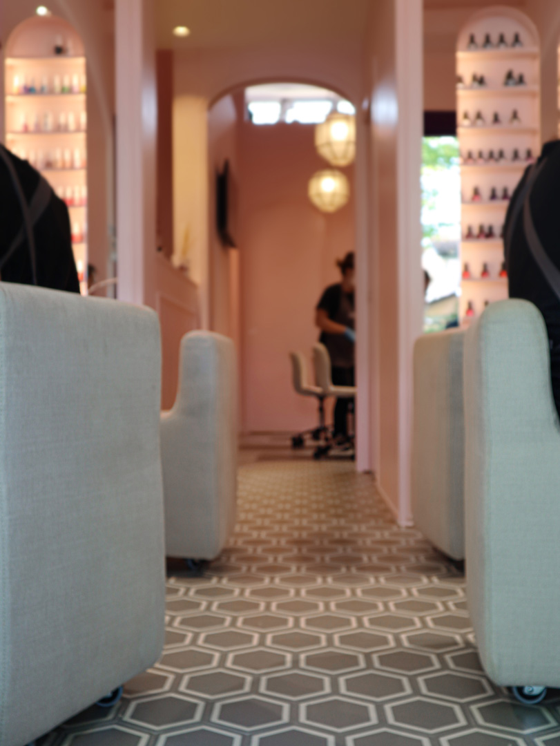Rosa, grigio e bianco: sono questi i toni centrali della palette cromatica che Studio 10 ha messo a punto per Maniboo, una nail spa di Forte dei Marmi. Molto attenti agli aspetti emotivi ed estetici dell’interior design, i progettisti hanno scelto il grigio medio della collezione Examatt (nel decoro Exatarget) per il pavimento. Decisamente contemporanea, la finitura opaca genera una superficie fresca e accogliente, che si traduce non solo in pienezza del colore ma anche in qualità materiche proprie della migliore ceramica, quella che non esprime altro che sé stessa. Come ci hanno raccontato gli architetti in questa breve intervista, Exatarget conferisce alla posa dinamicità e vibrazione: merito della profilatura bianca che ricalca la forma esagonale, e che conferisce la sensazione che il negozio si espanda in più direzioni.