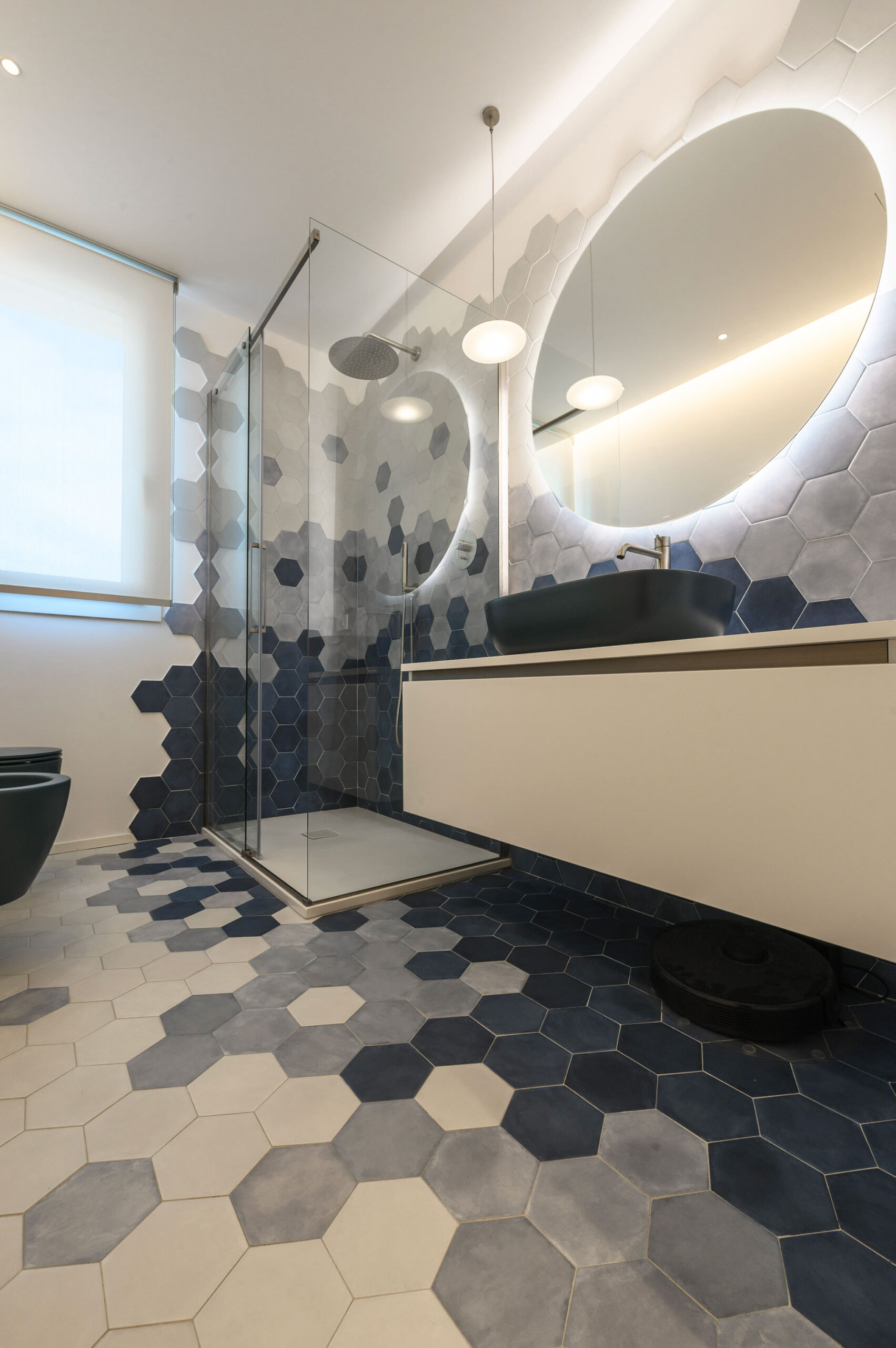 Bagno – EXANUANCE esagono, colori glicine latte e blu