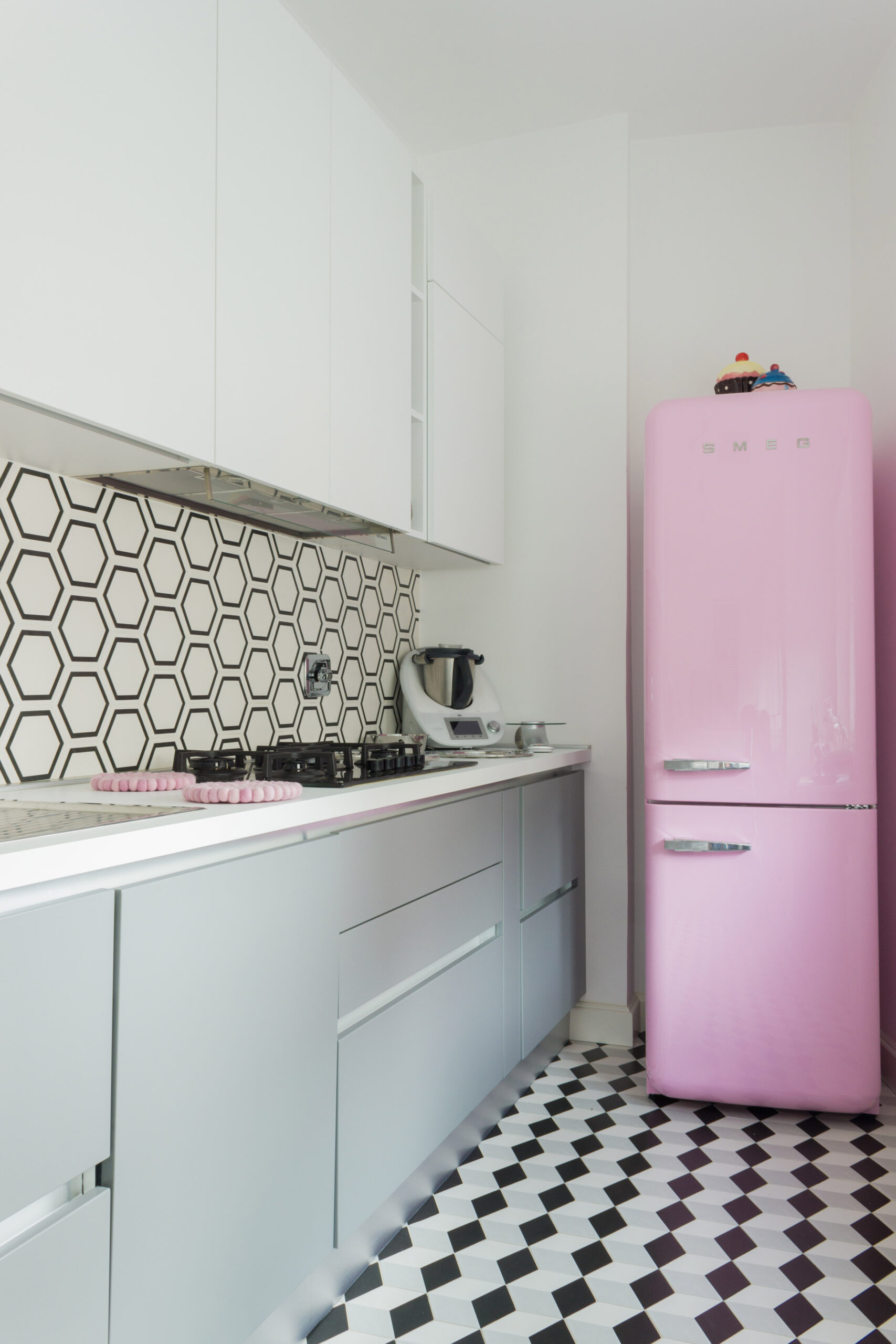 Esagona Decoro Exatarget bianco nero 15×17,1 come rivestimento della parete della cucina Examatt tredi nero 15×17,1 come pavimento della cucina