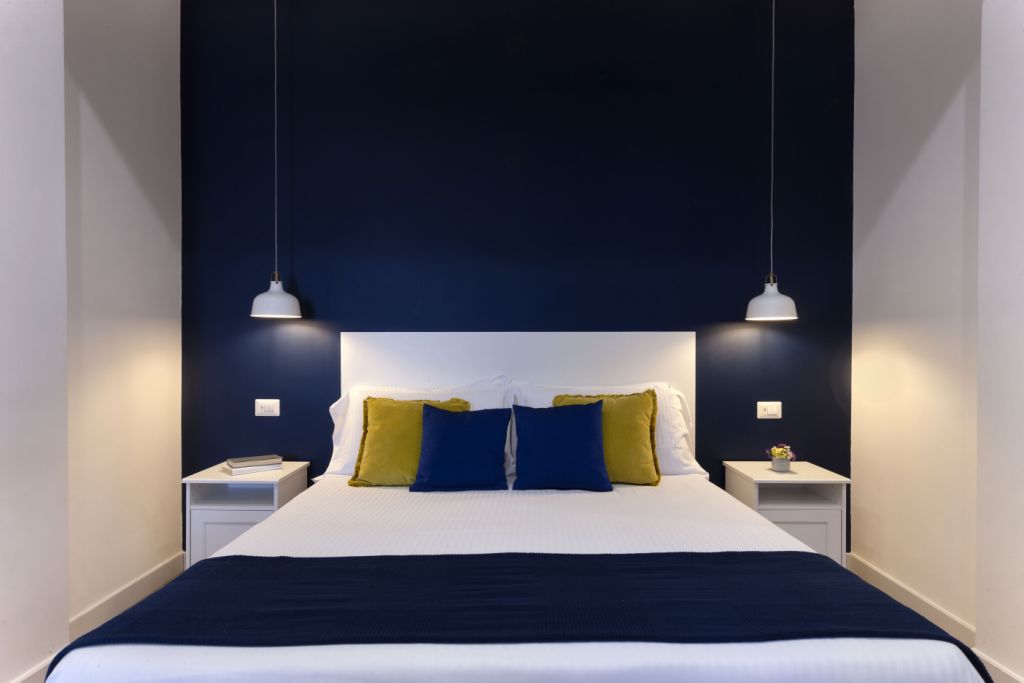Partendo dai colori Tonalite scelti per i rivestimenti di ciascun bagno abbiamo poi definito le tonalità e l’arredamento di tutte e quattro le camere di Corso38.